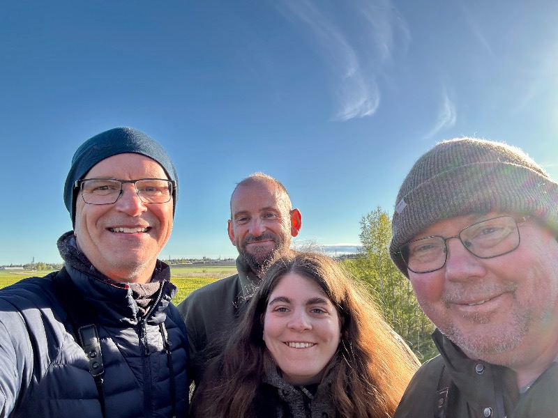 Klart fram till 11-tiden då en molnskärm drog in och sänkte tempen en del. Vi var ett taggat gäng som hjälptes åt och flera skådare/medlemmar kom och kämpade med oss. Även några nyfikna dök upp. En uppställd husbil vaknade upp med 10-talet skådare utanför till deras stora förvåning. Dessutom hade dom ställt sig där det inte här tillåtet 😉. I morgon genomför vi ”Fågelskådningens dag” i samma torn och område. Då dyker säkert de fulla luckornas arter upp.