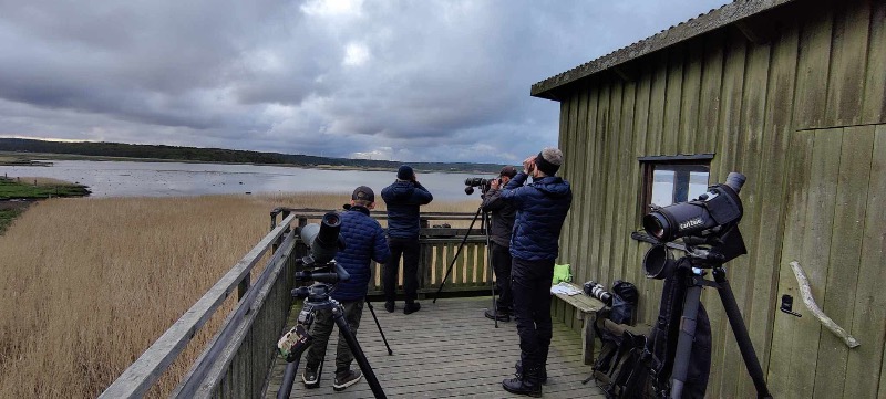 En frisk och kall, men solig morgon vid Asköviken där vi rivstartade årets fågeltornskamp med Kungsörn, vassångare och pilgrimsfalk nästan omgående. En kattuggla som satt i gluggen på en lada kröp tillbaka in i ladan strax innan fem och det tog till lunch innan vi lyckades se den igen. Sydostliga vindar och klart väder är bra förhållanden i Asköviken, så vi hade ganska stora förhoppningar på denna dag. En segdragen vår bäddade också för en hel del arter som vissa år dragit vidare. Så ganska snart kunde vi också få in de förväntade gässen som rastar i viken och en liten flock med vitkindade gäss gladde oss. Vitkindad gås som är vardagsmat på många fågellokaler i Sverige är en art man inte kan ta för givet i Asköviken. Morgonen övergick i förmiddag och arterna fortsatte att trilla in, men med två timmar började det gå ganska trögt. Vi hade ändå bra häng på vårt eget rekord på 92 arter och en del enkla arter kvar. Nötväcka, grönsiska och skogssnäppa hade inte hittats. När en av deltagarna skulle titta på våra bläsgässen som rastade på vattnet upptäcktes en svarthakedopping som är en riktigt ovanlig gäst i viken. När sen en ägretthäger kom inflygande hade vi bara två arter kvar till att tangera vårt gamla rekord, men länge kändes det som att vi skulle stanna för aktiviteten på småfåglarna närmast tornet var låg och det var enkla småfåglar vi hade kvar. Plötsligt tystnade hela skrattmåskollonin och flög upp och började skräna och genast höjde vi kikarna för att hitta rovfågeln som skapat reaktionen. Vi blev en smula besvikna när det bara var en sparvhök, men under letandet hittades också en lom som kom flygandes rak emot oss. En storlom hör inte heller till vanligheterna i Asköviken och nu hade vi bara en art kvar till tangerat rekord. Med mindre än en timme kvar kom en tamduva flygandes över tornet. Kul att tangera rekordet, men att göra det med en tamduva kändes lite antiklimax för oss. Tur då att våra yngsta deltagare som också deltog i Ungdomsskådarnas BigSit aldrig slutade att kämpa för med 5 minuter kvar upptäckte de en järnsparv och vi kunde avsluta tävlingen med ett nytt rekord för Asköviken. Riktigt rolig dag med många roliga arter där storlommen och kungsörnen nog var de roligaste för oss.
